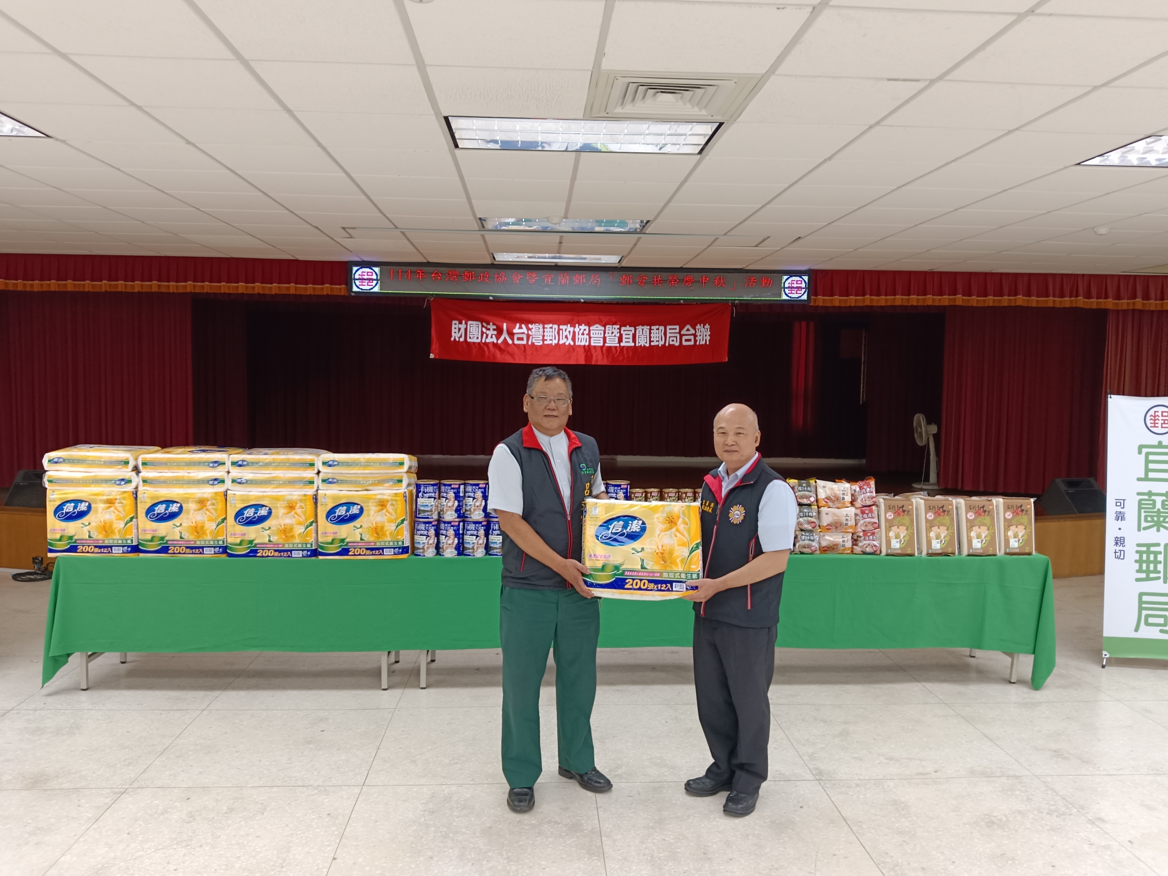 臺灣郵政協會暨宜蘭郵局在中秋節前夕,特別關懷弱勢團體,支持本土小農,透過郵政i郵購網購平台購買文旦禮盒、生活用品,贈送勞苦功高的榮民,一起歡度中秋佳節。