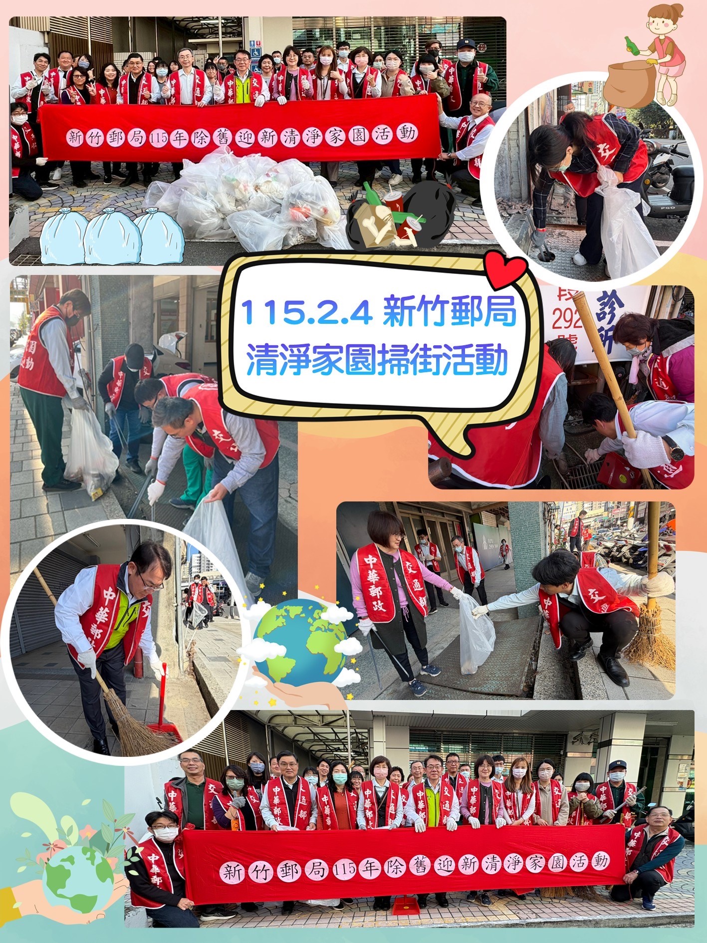 農曆春節將至,家家戶戶忙著除舊佈新、迎接新年。新竹郵局秉持關懷社區、服務在地的初心,今(4)日於春節前夕辦理「清淨家園」環境整潔活動,號召同仁走出辦公室、走進街巷,以實際行動整理市容,為社區營造乾淨、舒適的生活環境,也向鄉親提前拜年,陪伴大家以清爽心情迎新春。